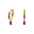 Huggie with Hanging Pink CZ - Sterling Silver with Gold Plating
